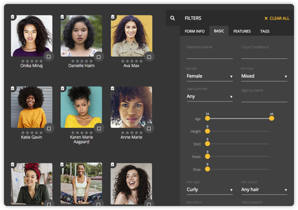 Combine your search criteria to find specific things: girls who are mixed race and have curly hair, for example.